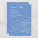 Convite de casamento do Central Park. Nova Iorque de casamento de destino, convite de cerimônia de casamento do Cop Cot gazebo do Central Park. Azul com a ilustração branca da famosa localização do casamento no Central Park.