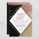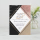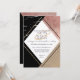 Este convite de casamento moderno e elegante é perfeito para o evento clássico e na moda. Ele apresenta mármore preto e branco, rosa dourado impresso falso, brilho dourado cintilante impresso falso e cantos de triângulo geométrico preto com um design de borda de ouro impresso falso e diamante preto sobre um simples fundo branco. É único, moderno, contemporâneo e original. ***NOTA DE DESIGN IMPORTANTE: Para qualquer solicitação de design personalizada, como solicitações de correspondência de produtos, alterações de cor, mudanças de posicionamento ou qualquer outra solicitação de alteração, clique no botão "MENSAGEM" ou envie um e-mail ao designer diretamente em lafemme.art@gmail.com. Você pode até enviar um e-mail para ela solicitando um design completamente personalizado e novo.