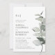 Convite De Casamento De Eucalyptus Monograma Elegante RSVP. Nosso monograma de casamento botânico apresenta uma elegante ramificação de eucalipto com aquarela em tons verdes poeirentos, colocando o texto do convite ao seu lado. A frente do convite também inclui o URL do site do casamento onde seus convidados podem RSVP e ver todos os detalhes normalmente enviados em um pacote do casamento. Este convite de casamento ao estilo moderno foi concebido para ser elegante e consciente do orçamento... para não mencionar a poupança de tempo. Todo texto de exemplo pode ser facilmente revisado com suas próprias informações sobre o modelo de personalização. Uma versão de orçamento com papel semismalho de 110 lb também está disponível no mesmo design.