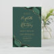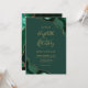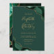 Uma esmeralda aquarela verde agate design aparada com falso brilho de ouro aparece em dois cantos deste elegante design. Personalize-o com os nomes dos casais em um guião de escrita manuscrita dourada sobre um grande e grande. Adicione os detalhes do casamento em uma placa colorida dourada e fontes itálicas em um fundo verde. O verso apresenta um design verde e dourado correspondente.