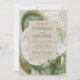 Convite para Casamento por Aquarela abstrato - apresenta um plano de fundo ligeiramente texturizado com um abstrato de tons verdes de aquarela e brilho dourado. Coordena-se com a coleção de Aquarelas do Abstrato.