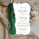A borda esquerda deste elegante convite de casamento moderno apresenta uma esmeralda verde aquarela agate borda com falsa brilho dourado. O texto personalizável combina a escrita manual de cinzas de carvão, as fontes em copperplate e itálico em um fundo branco. O verso apresenta um design emerald verde e dourado.