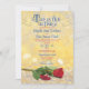 Sala de baile vermelho, azul e ouro e convite para o casamento de conto de fadas rosas vermelhas. Há uma bela rosa vermelha em um fundo no estilo de salão de ouro. Usa outros temas de contos de fadas e livros de histórias na formulação. As palavras estão em azul e vermelho. Tem um tema real adorável para este convite de casamento. Esta é uma escolha de convite de casamento excelente se seu tema é conto de fadas, princesa e princesa, real, livro de histórias, etc. É divertido e romântico, assim como a rosa vermelha que é o sotaque. Este design de convite para o casamento de contos de fadas românticos faz lembrar danças de baile de contos de fadas animadas com cores ousadas de joias e ouro adorável.