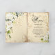 Pulgas botânicas brancas e verdes lindas com roteiro de "Casamento" no centro. Fundo colorido creme. Amarrou-se na falsa brilha do ouro para dar o tom à elegância romântica. Douradas malhas terminam este bonito convite para casamento. Um convite elegante e rico.
