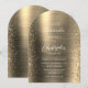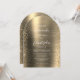 Este elegante convite de casamento moderno em forma de arco apresenta bordas laterais falhadas douradas. O texto personalizável combina manuscrito branco, fontes em copperplate e itálico em um fundo de metal esfregado em falso ouro. O lado inverso apresenta um design de metal embebido e brilhante correspondente.