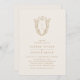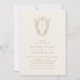Este simples convite de casamento de ouro botânico feito com creme de ouro da Coleção Daphne é perfeito para um casamento tradicional. O simples, porém clássico, design apresenta um elegante e eterno monograma da crista ornamentado, com flores e verde à volta das iniciais do casal.