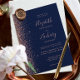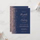 A margem esquerda deste elegante convite de casamento moderno apresenta um rosa dourado faux glitter design. O texto personalizável combina letras rosa pálidas, fontes em copperplate e itálico em um fundo azul marinho. O verso apresenta um design brilhante marinho azul e rosa dourado correspondente.