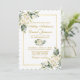 Watercolor Ivory White Floral Greenery Wedding Cartão de Convite para Casamento inclui rosas brancas de creme de marfim e verde botânico. Quadro Dourado, Script Dourado