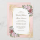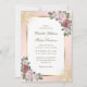 Convide seus hóspedes para sua elegante festa de casamento de ouro e blush com estes convites florais de casamento com flores cor-de-rosa e verde armando os detalhes de casamento dentro de uma moldura de ouro adornada com confete de ouro. Itens correspondentes disponíveis.