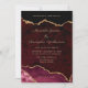 Elegante Burgundy Dourado Convite De Casamento Agate. Chic Burgundy Black Marble Geode com sotaques dourados como brilho. Perfeito para casamentos de inverno ou feriados.