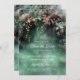 Uma ilustração com aquarela esbranquiçada da folhagem esmagadora em verde esmeralda, cintilante com luzes de fadas e poeira mágica, decora esse casamento outono de verão primavera, salvando o convite de data com um tema de floresta encantado. Um elegante e moderno salvará a data para um casamento de conto de fadas. Perfeito para noivas que amam o cenário da floresta de conto de fadas, o tema da floresta de fadas ou do jardim de fadas e verde esmeralda com um toque de roxo lavanda.