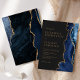 A borda direita deste elegante convite de casamento moderno apresenta um marinho azul de aquarela agata borda aparada com falso brilho dourado. O texto personalizável combina fontes serif, copperplate e itálico de cor dourada em um fundo preto de ardósia. O verso apresenta um design azul-marinho e um agate-ouro correspondentes.