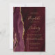 Este elegante e moderno convite de casamento mostra uma cor d'água burgundy agate design, aparada com falsa brilho dourado. O texto personalizável combina manuscrito dourado, copperplate e fontes itálicas. O verso apresenta um design de burgundy coordenadora e de ouro agate.