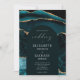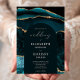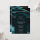 Este design moderno apresenta uma forma de arco de pétalas escura sobre um fundo de aquarela lacrimogênea cortada com brilho dourado. A palavra "casamento" aparece em um roteiro branco elegante. Personalize o convite com os nomes da noiva e do noivo numa combinação de tipografia serif e sans serif e os detalhes do casamento em itálico.