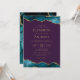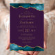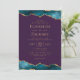 Este elegante convite de casamento moderno apresenta as cores superior e inferior da água lacrimejada, bordas cortadas com falsa brilho dourado. O texto personalizável combina fontes de serifa douradas, sans serif e itálico em um fundo roxo. O verso apresenta um design de chaleira e de agata dourada.
