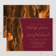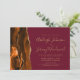 A borda esquerda deste elegante convite de casamento moderno apresenta uma laranja queimada e uma aquarela ferrugem borda agitada com falsa brilho de ouro. O texto personalizável combina manuscritos dourados, copperplate e fontes itálicas em fundo burgundy. O verso apresenta uma design de cor laranja queimada e dourada.