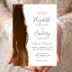 A borda esquerda deste elegante convite de casamento moderno apresenta uma mocha castanha de aquarela agata bordada com falsa brilho dourado. O texto personalizável combina a escrita manual de cinzas de carvão, as fontes em copperplate e itálico em um fundo branco. O verso apresenta um design de agata marrom e dourado correspondente.