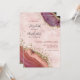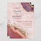 Convite Dourado de casamento de agata rosa com design de brilho dourado elegante e lindos rochedos roxos roxos e burgundy.