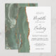 A borda esquerda deste elegante convite de casamento moderno apresenta um sábio verde aquarela agate bordado com falsa brilho dourado. O texto personalizável combina a escrita manual de cinzas de carvão, as fontes em copperplate e itálico em um fundo branco. O verso apresenta um design verde-sábio e um agate dourado correspondentes.