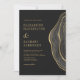 Este elegante convite de casamento moderno apresenta uma cinza preta, carvões e um geode de agata dourado sobre fundo negro. Personalize o texto dourado alinhado com a margem esquerda com os nomes da noiva e do noivo e os detalhes do casamento. O lado inverso é uma sombra de preto sólido.