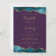 Convite Casamento Dourado de Agate Roxo Moderno Teal