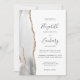 A borda esquerda deste elegante convite de casamento moderno apresenta uma cinza e uma aquarela branca, aparada com falsa brilho dourado. O texto personalizável combina manuscrito, copperplate e fontes itálicas em cinzas de carvão em um fundo branco. O lado inverso apresenta um design agate correspondente.