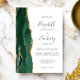 A borda esquerda deste elegante convite de casamento moderno apresenta uma esmeralda verde aquarela agate borda com falsa brilho dourado. O texto personalizável combina manuscrito, copperplate e fontes itálicas em cinzas de carvão em um fundo branco. O verso apresenta um design emerald verde e dourado.