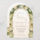 Convite Casamento Dourado de Arca Floral Branca Elegante
