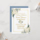 Convite Casamento Dourado de Azul com Dusta Azul Branco e
