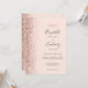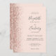 A margem esquerda deste elegante convite de casamento moderno apresenta um rosa dourado faux glitter design. O texto personalizável combina a escrita manual de cinzas de carvão, fontes em copperplate e itálico em um fundo cor-de-rosa pincelado. O verso apresenta um design brilhante cor-de-rosa-pincel e rosa.