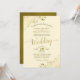 Este belo convite para o casamento apresenta um design simples, mas elegante, com uma caligrafia de escrita falada sobre um fundo de marfim ou creme e um filigre de folha falsa de ouro friável nos cantos. A formulação é formal, mas a disposição é moderna e na moda.