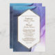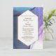 O pano de fundo deste elegante e único convite para casamento é um abstrato de design de aquarela impressionante em tons de azul, branco e rosa violeta. O minúsculo confete de ouro está sobre o fundo, dando-lhe uma aparência brilhante. No centro da frente está um quadro dourado duplo com um interior branco, e o seu texto personalizado em dourado escuro. A parte de trás do convite tem a mesma design de abstrato de aquarela azul. Bonita para qualquer estação do ano!