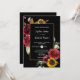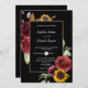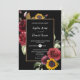 Design elegante com flores de cor d'água, flores e folhas de cor azul-viva, falso quadro de ouro, caligrafia moderna "e", divisor floral, sobre cor preta de fundo (você pode mudar a cor de fundo). Use a ferramenta Personalizar para adicionar suas informações. Para itens correspondentes, por favor, visite minha Coleção de Girassóis de Rosas de Borgonha.