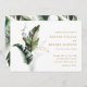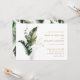 Este convite de casamento apresenta folhagem tropical verde-aquosa com sotaques falsos de folha de ouro e um padrão de folhas de banana no verso. É perfeito para um casamento de praia ou destino. >>> Veja a coleção inteira >> https://www.zazzle.com/collections/tropical_foliage_gold_collection-119316977990783186