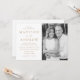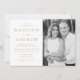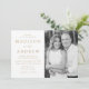 Convite para casamento de fotos moderno com detalhes do seu casamento à esquerda da design em letras douradas com acentos de escrita de caligrafia. Personalize a frente do convite adicionando seus nomes, detalhes do casamento e fotos verticais do noivado. A parte traseira do convite fornece espaço para texto e fotos adicionais. Projetado para coordenar com a nossa coleção de casamento do Modern Elegance.