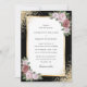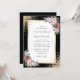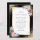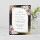 Convide seus convidados para a sua festa de casamento negra e esmagadora com estes elegantes convites florais para casamento, com flores cor-de-rosa e verde, preparando os detalhes do casamento, dentro de uma moldura dourada adornada com o confete dourado. Itens correspondentes disponíveis.