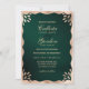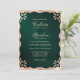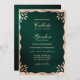 Este elegante, simples e moderno convite para casamento é perfeito para um evento de classe e na moda. Ele apresenta uma falsa borda de onda de ornamentado de folha de ouro impressa sobre um fundo verde de floresta escura metálico escovado. É uma design única, luxuosa e minimalista; a escolha perfeita para o seu dia especial. ***NOTA DE DESIGN IMPORTANTE: Para qualquer solicitação de design personalizada, como solicitações de correspondência de produtos, alterações de cor, mudanças de posicionamento ou qualquer outra solicitação de alteração, clique no botão "MENSAGEM" ou envie um e-mail ao designer diretamente em lafemme.art@gmail.com. Você pode até enviar um e-mail para ela solicitando um design completamente personalizado e novo.