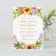 Watercolor Sunflower Boho Floral com Rosas, Peonies e Convite para Casamento Verde. Dourado Script. Ouro De Girassol Amarelo Para Trás.