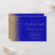 A borda esquerda deste elegante convite de casamento moderno apresenta uma borda falsa de ouro. O texto personalizável combina manuscrito dourado, copperplate e fontes itálicas em um fundo azul real. O verso apresenta um design de brilho azul real correspondente e ouro.