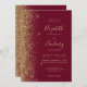 Convite Casamento Dourado de Lixo Vermelho Burgundy