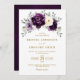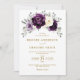 O Elegante convite para o casamento floral no meio do verão apresenta um buquê de pessoas com rosas de aquarelas em tons de ameixa roxa, floral de marfim de champanhe e sábio, folhas verdes e peludas de eucalipto botânico. Por favor, encontre mais designs e variações na minha loja de "blisswedingpaperie". E fique à vontade para me contactar para mais personalizações ou itens correspondentes.