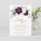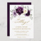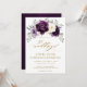 O Elegante convite para o casamento floral no meio do verão apresenta um buquê de pessoas com rosas de aquarelas em tons de ameixa roxa, floral de marfim de champanhe e sábio, folhas verdes e peludas de eucalipto botânico. Por favor, encontre mais designs e variações na minha loja de "blisswedingpaperie". E fique à vontade para me contactar para mais personalizações ou itens correspondentes.