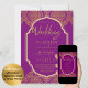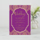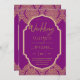 Convite Casamento Dourado de Ornamentados Magenta-Rosa Ele