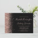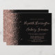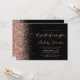 A borda esquerda deste elegante convite de casamento moderno apresenta uma borda falsa de ouro rosa. O texto personalizável combina a letra rosa-rosa, a letra copperplate e a letra itálica em um fundo preto. O verso apresenta um design brilhante rosa e preto correspondente.