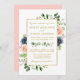 Cor de Água Elegante Moderna Eucalyptus Verde Rosas Rosa Rosa Dusty Rosas Azuis Dourado Convite Para Casamento - Blush Rosa