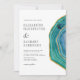 Este elegante convite de casamento moderno apresenta um geode de uma coloração aquática teal com realces de folha falsa de ouro sobre fundo branco. Personalize o texto da cinza de carvão alinhado à margem esquerda com os nomes da noiva e do noivo e os detalhes do casamento. O lado inverso é uma sombra correspondente de palha sólida.