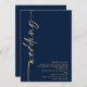 Casamento Dourado com Marinho de Código QR Clássico Caligrafia. Adicione seu código QR ao seu site de casamento no verso faz com que esta seja uma opção conveniente para seus convidados para RSVP e veja todos os detalhes sem a necessidade de RSVP separado e cartões de detalhes. O script de na moda é girado para o lado esquerdo, com todos os detalhes elegantemente para a direita com muito espaço em branco para uma sensação contemporânea. Personalize facilmente com seus detalhes. E altere a cor do texto e do plano de fundo, se desejar, através da opção editar mais.