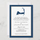 Este Anúncio de Casamento Simples e Moderno apresenta um mapa azul de Cabo Cod marinho com um coração de ouro de champanhe sobre a área de Mashpee, Massachusetts. O Dourado Coração é móvel, de modo que se você precisar de um local diferente, clique para personalizar ainda mais para mover o coração. Para obter informações sobre alterações de design personalizadas pelo designer independente, envie um email para paula@labellarue.com ANTES de personalizar ou fazer um pedido.