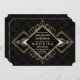 Design elegante e único, com o estilo de ouro e Deco de Arte Negra do Excelente Gatsby époque, de 20 anos, rugindo. Use a ferramenta Personalizar para adicionar suas informações. Para itens correspondentes, visite, por favor, minha Coleção de Arte Dourada Glam.