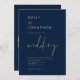 Casamento Dourado do Marinho de Código QR do Script Clássico. Estilo minimalista em azul-marinho clássico e ouro. Casamento está em um roteiro de na moda. Personalize facilmente o resto do texto para seus próprios detalhes. Você pode fazer a opção editar mais, se desejar.